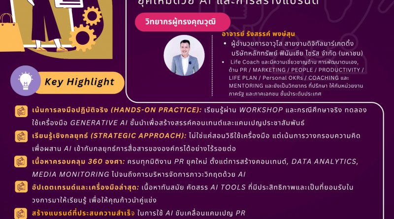 ข่าวประชาสัมพันธ์ 4 ธันวาคม 2025 admin ขอเชิญชวนส่งบุคลากรเข้าร่วมการฝึกอบรม หลักสูตรการนำเสนอผลงานสำหรับนักวิจัย: จากห้องทดลองสู่เวทีระดับโลก (Researcher’s Presentation Pro: From Lab to Global Stage) และหลักสูตร AI-Driven PR Brand Strategy: ถอดรหัสกลยุทธ์สื่อสาร สร้างนักประชาสัมพันธ์ยุคใหม่ด้วย AI และการสร้างแบรนด์ ขอเชิญชวนส่งบุคลากรเ Read More