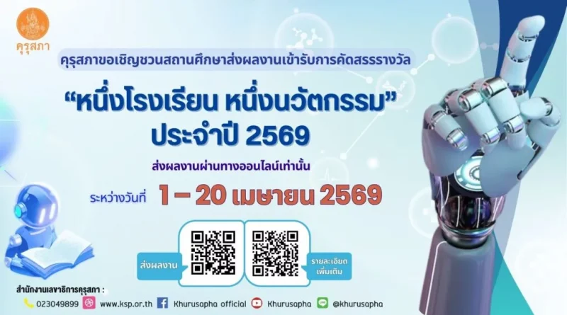 ข่าวประชาสัมพันธ์ 27 มีนาคม 2026 admin ประชาสัมพันธ์ประกาศการคัดเลือกรางวัลของคุรุสภา ประจำปี 2569 ด้วยสำนักงานเลขาธิ Read More