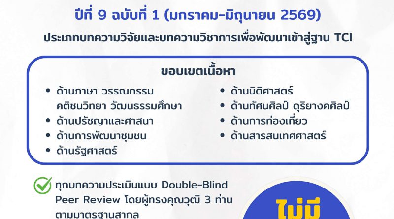 ข่าวประชาสัมพันธ์ 27 มีนาคม 2026 admin ขอเชิญชวนส่งบทความเพื่อเผยแพร่ในวารสาร ขอเชิญชวนส่งบทความเพ Read More