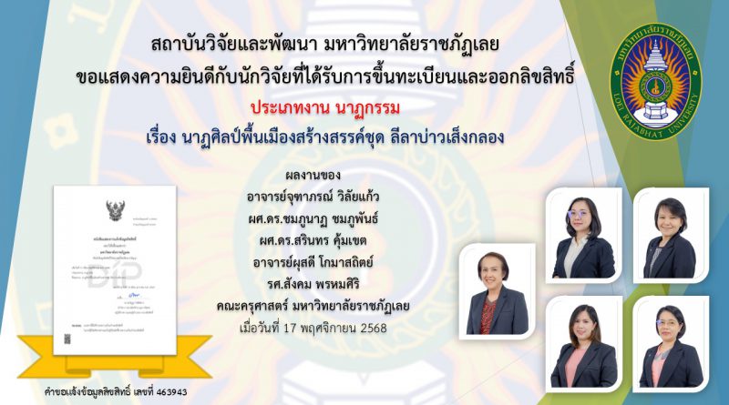 สถาบันวิจัยและพัฒนา 12 พฤศจิกายน 2025 admin สถาบันวิจัยและพัฒนา ขอแสดงความยินดีกับนักวิจัยที่ได้รับการขึ้นทะเบียนและออกลิขสิทธิ์ มหาวิทยาลัยราชภัฏเลย สถาบันวิจัยและพัฒนา Read More