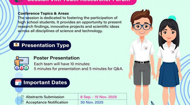 conference 8 กันยายน 2025 admin ประชาสัมพันธ์การส่งบทความวิจัยเข้าร่วมนำเสนอภายในงานประชุมวิชาการระดับชาติวิจัยรำไพพรรณี ครั้งที่ 19 และงานประชุมวิชาการระดับนานาชาติ ครั้งที่ 1 โดยสมาคมพัฒนาชุมชน ท้องถิ่นและสังคม เครือข่ายความร่วมมือทางวิชาการ ประชาสัมพันธ์การส่งบ Read More