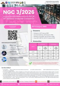 การประชุมวิชาการบัณฑิตศึกษาระดับชาติ ครั้งที่ 39 10 – 11 ก.ค. 69 มหาวิทยาลัยศรีปทุม (ออนไลน์) https://www.ngc-psaku.com/