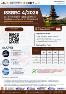 33rd International Social Sciences and Business Research Conference 10 – 12 ส.ค. 69 Politeknik Pariwisata Bali (Onsite + Online) https://www.issbrc-psaku.com/