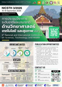 6th National and International Conference on Science, Technology and Health 18 – 19 ก.ย. 69 Souphanouvong University, Lao PDR (Online) https://www.nicsth-alps.com/