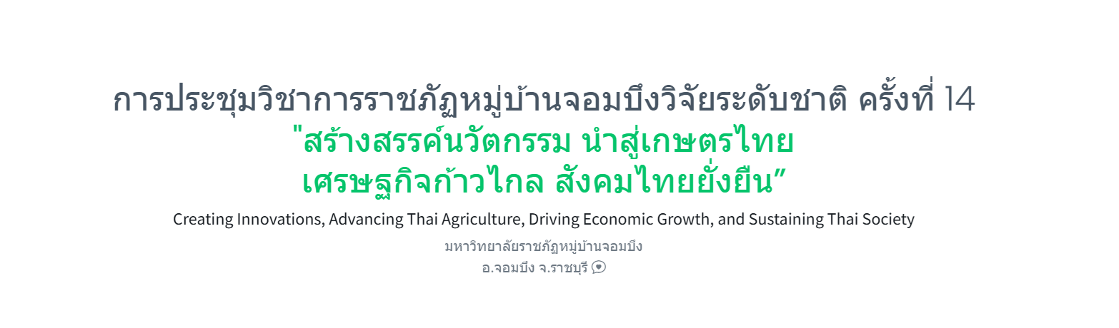 ด้วยมหาวิทยาลัยราชภัฏหมู่บ้านจอมบึง ได้กำหนดจัดงานประชุมวิชาการระดับชาติราชภัฏหมู่บ้านจอมบึงวิจัย ครั้งที่ 14 “สร้างสรรค์นวัตกรรม นำสู่เกษตรไทย เศรษฐกิจก้าวไกล สังคมไทยยั่งยืน” The 14th Muban Chombueng Rajabhat National Conference “Creating Innovations, Advancing Thai Agriculture, Driving Economic Growth, and Sustaining Thai Society” ในวันอาทิตย์ ที่ 1 มีนาคม พ.ศ. 2569 ณ มหาวิทยาลัยราชภัฏหมู่บ้านจอมบึง อำเภอจอมบึง จังหวัดราชบุรี
