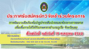 สถาบันวิจัยและพัฒนา ได้รับเชิญเป็นวิทยากรอบรมเชิงปฏิบัติการเรื่อง การแปรรูปผลิตภัณฑ์ด้านการเกษตร “จิ้งหรีด” ณ ศาลาประชาคมอำเภอปากชม จังหวัดเลย