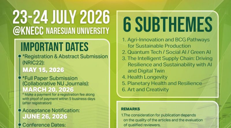 conference 27 กุมภาพันธ์ 2026 admin ขอเชิญชวนส่งผลงานเข้าร่วมนำเสนอการประชุมวิชาการระดับชาตินเรศวรวิจัยและนวัตกรรม ครั้งที่ 22 “Greenism for inclusive innovation” ขอเชิญชวนส่งผลงานเข้ Read More
